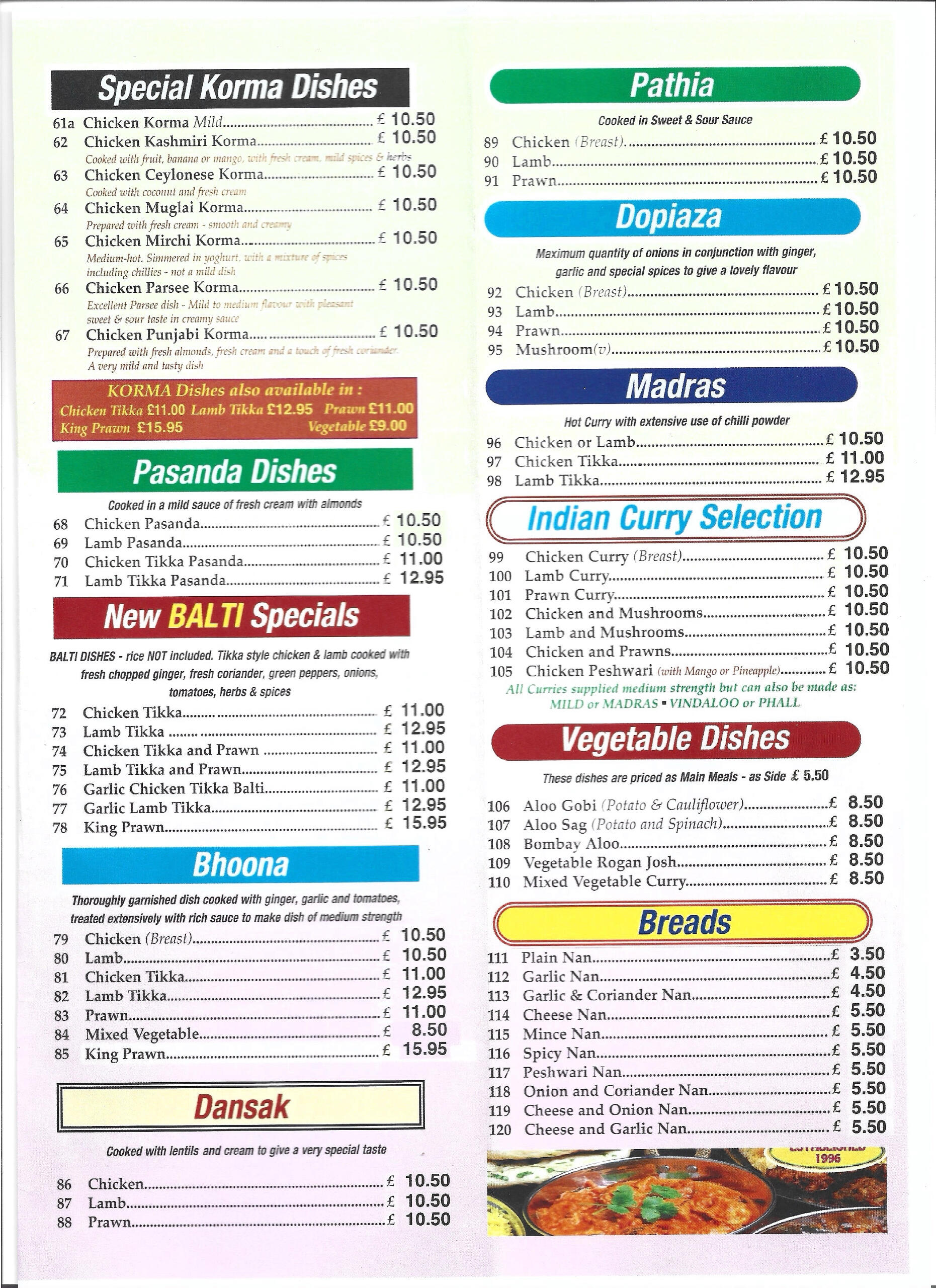 Natural Spice cater for patrons in the Elgin area requiring the finest Indian Cuisine, they can also supply Pizzas and Turkish Kebabs. To see full Menu, click on the MENU, choose meal and telephone your order at the numbers provided.